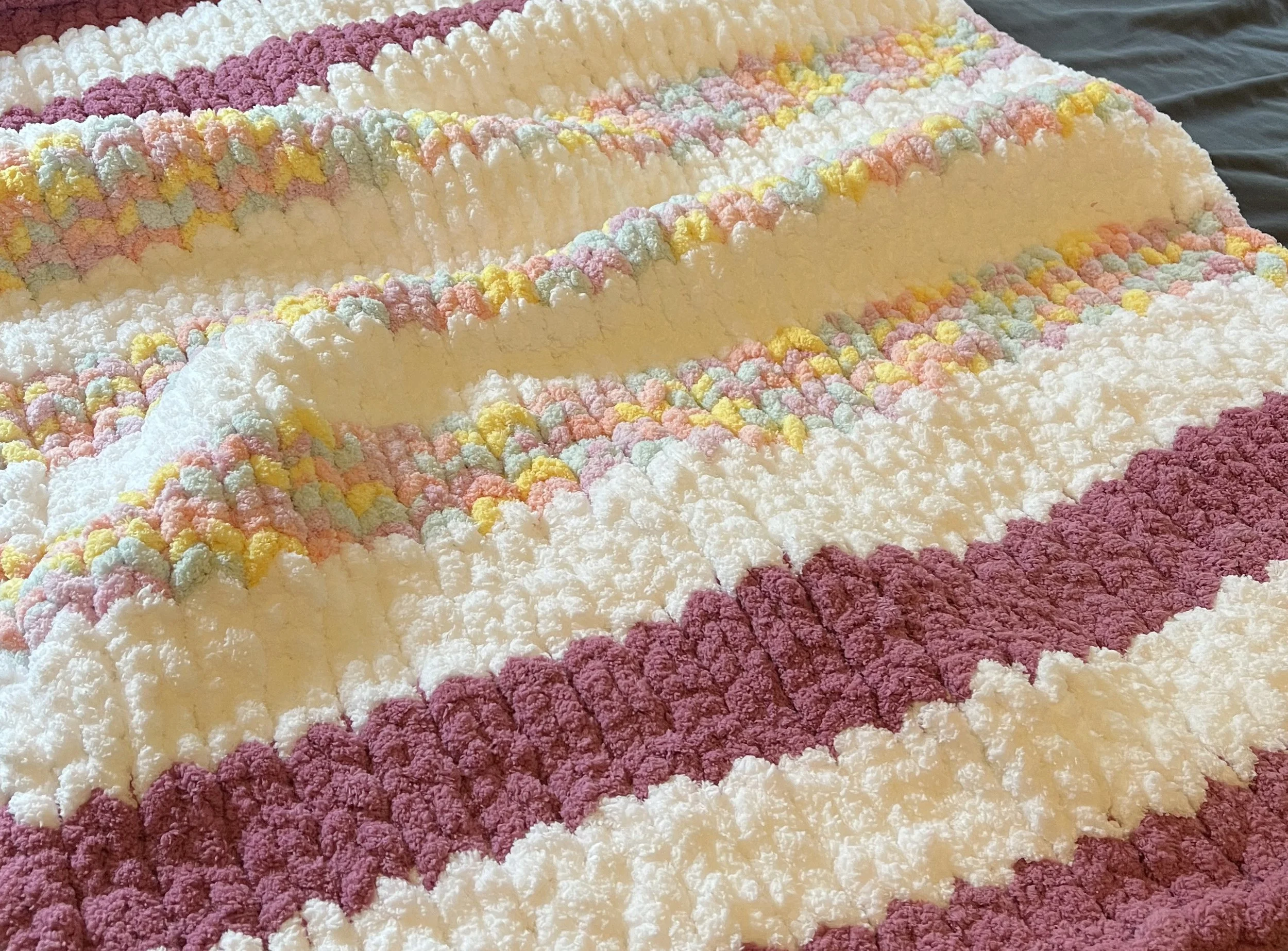 Handmade chunky knit blankets, beanies, stuffed animals and more.